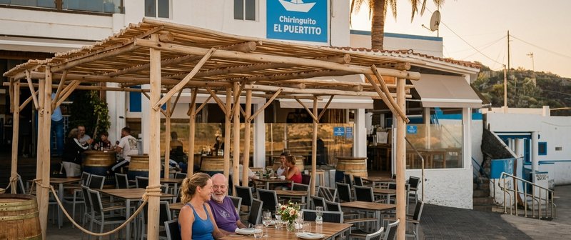 If you are looking for the essence of the south without the frills of the major tourist hubs, Chiringuito El Puertito is a must-stop. Located in the small protected bay of El Puertito de Adeje, this beach bar represents the most relaxed spirit of the island, offering refreshing drinks and local snacks just a few meters from the sand and the crystal-clear waters of this picturesque fishing village.