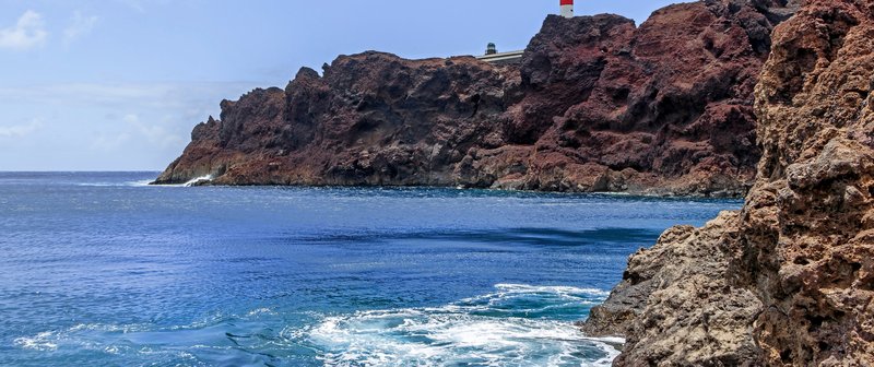 El protagonista indiscutible es el Faro de Teno, pintado a rayas rojas y blancas, que vigila las aguas cristalinas. El paisaje volcánico aquí es agreste, lleno de cactus y rocas negras, contrastando con un mar que suele estar tranquilo en la pequeña bahía, perfecto para un baño refrescante en el "fin del mundo".