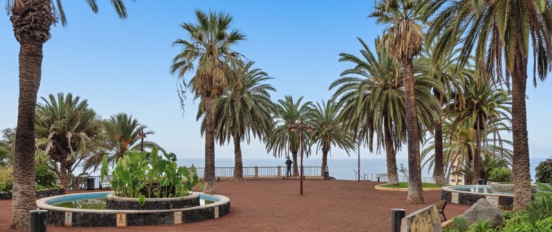 Este mirador está situado dentro del precioso Parque Taoro, un oasis de jardines tropicales, fuentes y paseos. Pero lo que le da su carácter único es el edificio que tiene a sus espaldas: el antiguo Gran Hotel Taoro. Fue el primer hotel de gran lujo de España, donde se alojaron desde la realeza europea hasta la escritora Agatha Christie. Desde el Mirador Taoro, te sentirás como un aristócrata victoriano contemplando sus dominios.