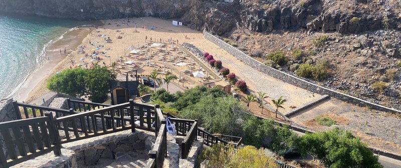 - El Funicular: Existe un funicular que baja directamente a la arena, pero normalmente es de uso exclusivo para los huéspedes del hotel. No te frustres, el paseo a pie ofrece unas vistas panorámicas de La Gomera que son sencillamente espectaculares.